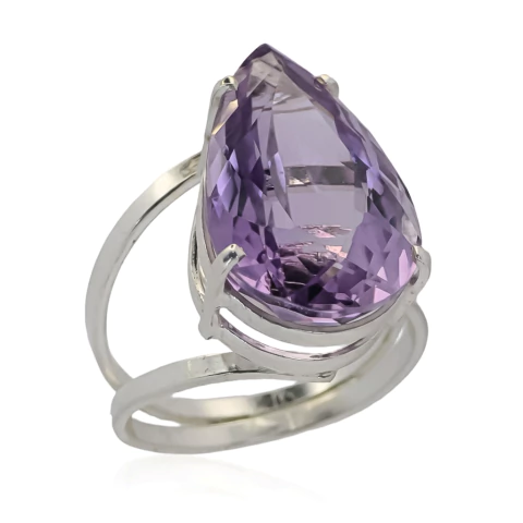 Anel Ametista em Prata 925 com lapidação gota, tonalidade violeta equilibrada e transparência selecionada. Peça elegante, sofisticada e de acabamento premium.